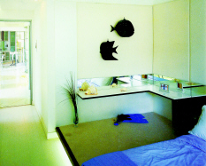 4 )鋪設地板的地方與墻地磚的交接處一定要隔開 . 按照目前一般的施工程序是先做好地擱柵后鋪設地磚 , 所以造成鋪設地磚后 , 地擱柵受潮 , 這樣會造成很大的隱患 , 通常在 4~5 個月才會被發(fā)現(xiàn) . 安全的操作應該是 : 在鋪設地擱柵時留下與地磚的交接處 , 在地磚鋪設后 7 天左右再做地擱柵就可以了 .