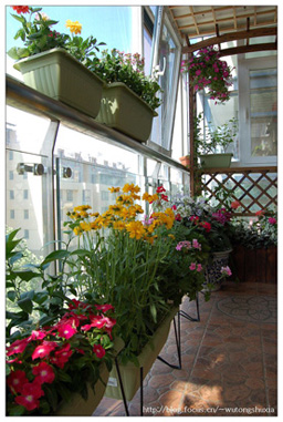 陽臺(tái)是家的窗戶,種植些漂亮花草不僅可以美化家居,而且一年四季,也可以看到季節(jié)的變遷?!凹词故牵逼椒矫椎慕锹淅铮部梢宰龀銎恋膱@林美景”嘉藝園林創(chuàng)意設(shè)計(jì)公司總設(shè)計(jì)師周培偉說,“關(guān)鍵是怎樣搭配,曬得到太陽的地方該種怎樣的植物,完全曬不到太陽的角落里又該栽什么”。