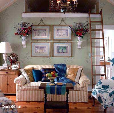 客廳面積偏小,如果再加上室內(nèi)光線不足的話,勢必會令居住者產(chǎn)生壓抑感。這時若能恰當(dāng)運用明亮的色調(diào)裝飾客廳,則會有效改善客廳內(nèi)的光感度。在小客廳里選一幅以海洋或森林為題材的油畫或水彩畫作裝飾,亦能影響對小空間感覺的擴大。只要選擇合適的顏色,小屋唱出的歌定會悠揚而深情。