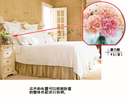 臥室最大的功能在于提供一個良好舒適的睡眠環(huán)境與放松身體的環(huán)境。所以在臥室放些花朵,除了美化空間之外,更能增添浪漫的氣氛。