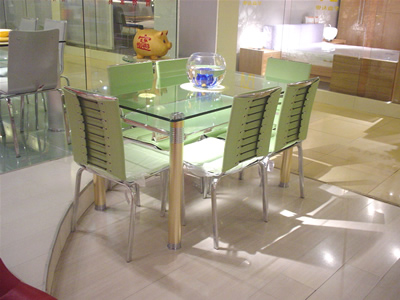 2、餐桌的質(zhì)地要講究:餐桌表面以易清理為本,大理石與玻璃等桌面較為堅(jiān)硬、冰冷,藝術(shù)感較強(qiáng),但因其易迅速吸收人體飲食后產(chǎn)生的能量,不利于就餐者的坐談交流,因此不宜全部用于正餐桌,但可以通過(guò)形狀和質(zhì)地進(jìn)行調(diào)和,比如:圓形的大理石餐臺(tái)或方形木桌等,有這些組合會(huì)帶來(lái)良好的效應(yīng)。