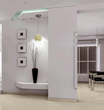 中國的傳統(tǒng)大宅院入門之處均設(shè)有大型玄關(guān),而現(xiàn)代都市的住宅普遍面積狹窄,若再設(shè)置傳統(tǒng)的大型玄關(guān),則明顯會感覺空間局促,難以騰挪。所以折衷的辦法是用玻璃屏風(fēng)來作間隔,這樣既可防止外氣從大門直沖入客廳,同時也可令狹窄的玄關(guān)不顯得太逼仄。