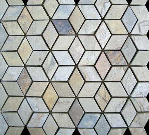 圖案還可以在空間里自由發(fā)揮玩一點花樣,比如用馬賽克做一些特別的排列,突破常規(guī)地做一些讓人驚異的效果,甚至可以是炫目的。利用馬賽克自身遇光閃爍的特性,想一些奇妙的點子吧。比如用金箔、玻璃的反光制作成螺旋、纏繞、波浪的圖案,再用白或黑作底色襯托,同樣是一篇絕妙好辭。