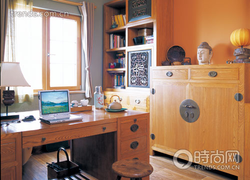女主人的書房,從柜門的荷葉到小暖瓶,每個細(xì)節(jié)都體現(xiàn)出懷舊的人文氣息。