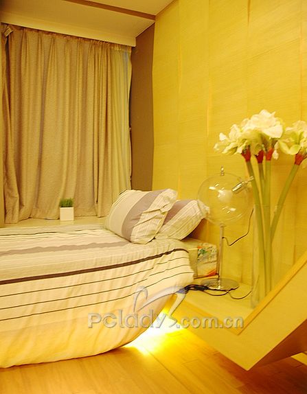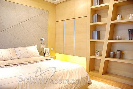 編輯點(diǎn)評:當(dāng)經(jīng)過那條過道的時候,就能分明的感覺到臥室里陽光的“密度”,果然,主臥室就是個收藏陽光的地方。這里沒有繁瑣的設(shè)計與裝飾,衣柜和裝飾架都好好地“擱置”在墻體上,沒有霸占主人睡覺的空間。大大的玻璃窗,一刻也沒停歇地迎接陽光的到來……