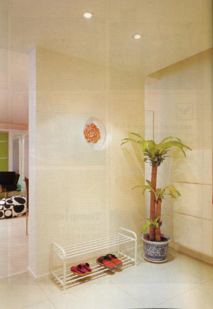 4、玄關(guān)的墻面最好以中性偏暖的色調(diào),能給人一種柔和、舒適之感,讓人很快忘掉外界環(huán)境的紛亂,體味到家的溫馨。