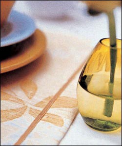 做窗簾剩下的布料可以做成餐墊,也可以買一小塊同色系不同花色的壁布,把它們稍加縫紉,墊在餐盤下面、鋪在桌子上,簡(jiǎn)單的餐桌立刻顯得豐富起來(lái)。