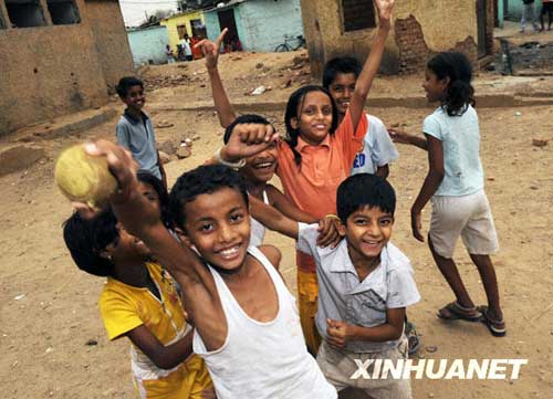 5月29日,一些兒童在印度新德里一處貧民窟內(nèi)玩耍。奧斯卡獲獎影片《貧民窟的百萬富翁》讓人們看到了印度貧民窟孩子們的童年。生活在貧民窟的孩子雖然沒有可愛的玩具、漂亮的衣服,但他們依然向往快樂,以自己的方式享受著童年。新華社記者王曄攝