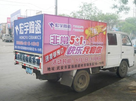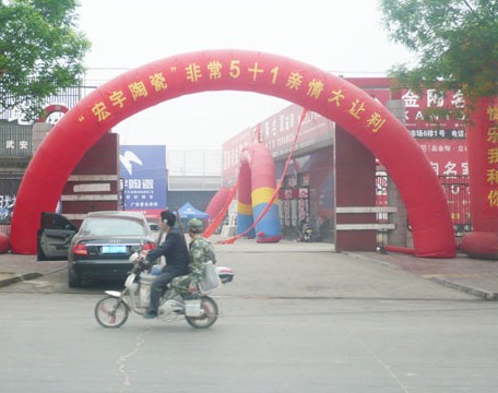 為了擴(kuò)大活動(dòng)影響,宏宇陶瓷武安專賣店進(jìn)行聲勢浩大的宣傳推廣,提前在各大交通要道擺放了大紅拱門,還安排車身精心設(shè)計(jì)包裝的品牌宣傳專車進(jìn)行巡游,派出了工作人員廣泛派發(fā)傳單。宏宇還精心布置了現(xiàn)場,充滿節(jié)日的喜慶氣氛,除了門外面向大道的高大拱門,店內(nèi)還張貼了活動(dòng)海報(bào),擺放氣球、x架等等。