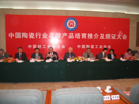 陶瓷行業(yè)名牌產(chǎn)品”殊榮。 大會(huì)由中國(guó)輕工業(yè)聯(lián)合會(huì)副會(huì)長(zhǎng)、中國(guó)陶瓷行業(yè)協(xié)會(huì)理事長(zhǎng)楊自鵬主持。全國(guó)政協(xié)副主席周鐵農(nóng)以及中國(guó)輕工業(yè)聯(lián)合會(huì)、中國(guó)名牌戰(zhàn)略推進(jìn)委員會(huì)、中國(guó)陶瓷工業(yè)協(xié)會(huì)、陶瓷行業(yè)精英人士共200多人出席了大會(huì)。會(huì)上,中國(guó)陶協(xié)秘書(shū)長(zhǎng)付維杰介紹了協(xié)會(huì)在培育陶瓷行業(yè)名牌產(chǎn)品方面的戰(zhàn)略規(guī)劃與實(shí)施情況。對(duì)獲得“中國(guó)陶瓷行業(yè)名牌產(chǎn)品”的包括建筑陶瓷、日用陶瓷、衛(wèi)生陶瓷、陶瓷機(jī)械、陶瓷裝飾材料(原料)等在內(nèi)的八大類(lèi)別68個(gè)品牌頒發(fā)證書(shū)、牌匾。其中建筑陶瓷有21個(gè)品牌獲此殊榮。宏宇企業(yè)領(lǐng)導(dǎo)以及經(jīng)銷(xiāo)商代表參加大會(huì)并接受頒獎(jiǎng)。
