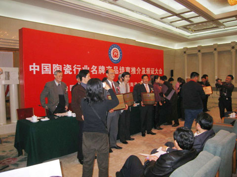 1月15日上午10點(diǎn),“中國(guó)陶瓷行業(yè)名牌產(chǎn)品培育及頒證大會(huì)”在北京人民大會(huì)堂隆重舉行?!昂暧睢迸茐Φ卮u產(chǎn)品喜獲“中國(guó)