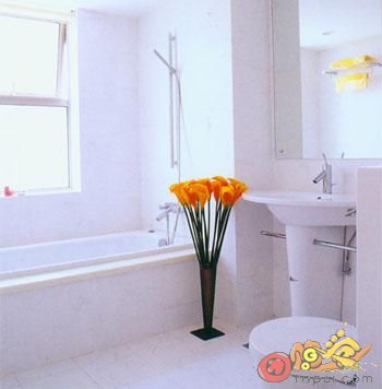 家庭衛(wèi)生間大多采用低彩度、高明度的色彩組合來襯托干凈爽快的氣氛,因此衛(wèi)生間的整體燈光不必過于充足,只要有幾處重點(diǎn)即可。