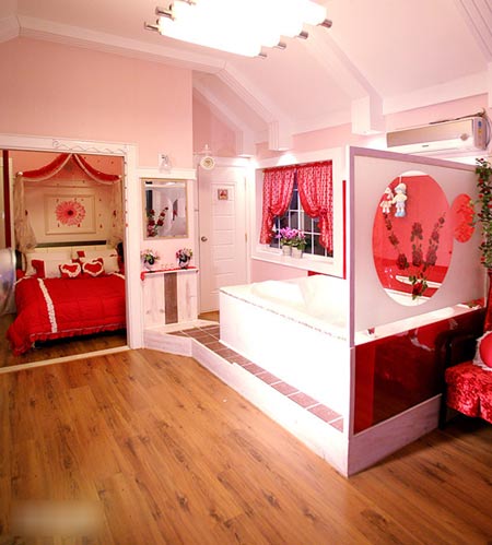 當你有了一個純白的底色時,你就可以讓顏色在上面歡呼雀躍了。純凈的紅黃藍綠任意穿梭翻滾,可以有點卡通,可以有點童趣,可以丁丁當當如童聲笑語般張揚燦爛。白色是最好的底色,只需要留住足夠的底色,其他顏色便可以百無禁忌。同理,在選擇浴室用具上,新穎、別致、夸張的造型是上選。