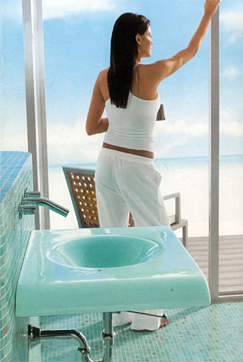 空間決定形式。洗臉池大致分成獨(dú)立式和臺式兩種。獨(dú)立式的造型美觀、占地面積小,并便于維修,適合空間不大的衛(wèi)生間。但它需要配備鏡箱或盥洗架,以便利用池子上方的空間擺放一些洗漱用具及化妝品等。臺式洗臉池至少要占據(jù)一張小課桌的空間。它的臺面上可放洗漱用具,下面的柜子還能放雜物。如果衛(wèi)生間面積不大,可以考慮在墻角安裝一種三角形的洗臉池,池子的上方可掛一個三角的雜物架,以存放洗滌用品。