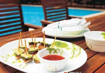 倘若能將廚房里的餐具也換上春裝,甚至增加幾件含有科技成分的新餐具,心情豈不是更好?選一款來自美國(guó)的康寧玻璃“瓷盤”(約100元/個(gè)),感覺像被施了障眼法。明明是三層夾層玻璃結(jié)構(gòu),但外表卻像瓷器,光潔細(xì)白,鮮亮如新,比普通瓷盤薄1/3,拿在手里無比輕巧。圖案也很明媚,以印花為主,這個(gè)季節(jié)不如選套幸運(yùn)草或歐洲香草系列餐具。草,本來就含有希望和生機(jī)勃勃的寓意,更何況色彩清新、亮麗,正好和明媚的春天相映成輝。