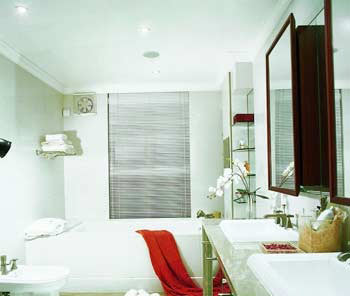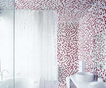 紅色是促使情緒起伏的顏色,如果置身其中,人難免激烈、亢奮而又容易疲憊。浴室的主人一定是富有**的,他用大量紅色來(lái)點(diǎn)綴家居中最本色的部分;但即使在浴室,也沒(méi)有放棄理性,冷靜的灰白恰如其分地約束了紅色的煥發(fā)。這里并不拒絕靈魂的燃燒,無(wú)形的節(jié)制卻又無(wú)處不在。白色令人聯(lián)想到無(wú)暇和純潔,浴室的主人在潛意識(shí)中追求的絕不僅僅是身體的一塵不染,他還傾向精神層面的自我凈化。