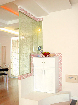 隔斷的作用其實不僅僅是劃分空間,而且也是聯(lián)系空間的重要手段,有時也可以用隔斷來做虛劃分。做隔斷的方法有很多種:以低形矮臺來限定空間,以低柜式成型家具的形式做隔斷體;以噴砂玻璃、壓花玻璃等通透的材料分隔大空間;以帶有不同花格圖案的透空木格柵屏作隔斷,既有古樸雅致的風韻,又能產(chǎn)生通透與隱隔的互補作用等。