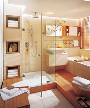 三要素定色屬于暖色系的紅、黃、橙,令人溫暖、喜悅,同時使空間感覺變小,而藍(lán)、綠等冷色系的顏色令人感覺寒冷、冷靜,使空間感覺較寬敞;另外,彩度及明度較高的色彩可塑造空間的寬敞,反之則使空間有穩(wěn)重感。除了色彩本身,照明效果就象色彩的“魔術(shù)師”,相同的顏色常因不同的光線亮度,在視覺上產(chǎn)生差異。因此,為衛(wèi)生間選擇色調(diào)前,應(yīng)綜合考慮以上三要素。