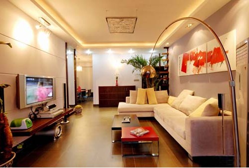 2、吊頂形式要與地面擺設(shè)相協(xié)調(diào)——以直線吊頂為例,直線吊頂圍繞四周走一圈,相當(dāng)于把某個(gè)區(qū)域框出來了,此時(shí),如果頂面燈具位于吊頂?shù)闹行狞c(diǎn),地面家具的擺放應(yīng)與其相呼應(yīng),否則,人坐在沙發(fā)上,看頭頂?shù)臒?,?huì)感覺燈象歪了似的。