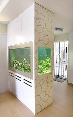 魚缸筑墻,不但讓人眼前一亮,而且能讓客廳享有更多隱私