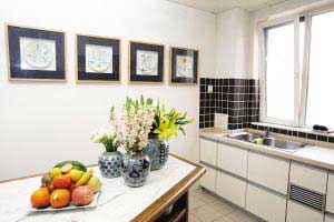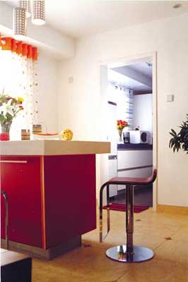 不過,廚房吧臺與客廳、臥室里的吧臺有很大的不同??蛷d和臥室是居室的重點(diǎn)區(qū)域,一般都裝飾得非常講究。這里的吧臺更講究和環(huán)境相適應(yīng),造型應(yīng)簡潔明快,具有一定裝飾性,富于生氣,需要盡量避免呆板生硬的設(shè)計(jì)。