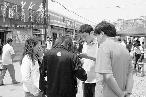 6月8日中午,全國(guó)統(tǒng)一高考吉林省松原市扶余縣第三中學(xué)考點(diǎn)門(mén)外,一名考生(左二)在與場(chǎng)外發(fā)送答案的青年男子(右二)交流。這位女生抱怨自己收到的選擇題答案不完整,對(duì)男子說(shuō):“你是從17題給我發(fā)進(jìn)來(lái)的?!庇浾?張國(guó)攝