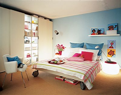 臥室的家具類型:臥室的家具種類眾多,從大的分類看,一般有單件家具、折疊式家具、組合式家具、多功能家具等。單件家具雖有很大的靈活性,但不利于室內(nèi)空間的利用,放在一起也很難協(xié)調(diào),因此近年來,更趨向與采用折疊式、組合式、多功能式家具。