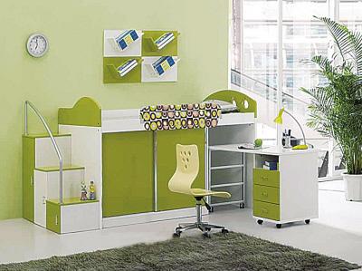 隨著年齡的增長,孩子對家具的配置也有不同的需求。因此,一套家具要能夠伴隨兒童的成長,滿足孩子們不同年齡的需要。家長可以通過家具飾品的更換來延續(xù)兒童房的功能。比如年齡較小的孩子,床具、窗簾可以選擇卡通圖案的,室內(nèi)可以多選用嫩綠、粉紅等淡雅色調(diào);而年齡稍大一點的孩子可以根據(jù)孩子的性格適當改變房間的配飾和布局。