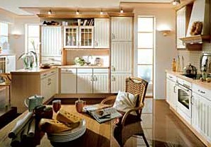 這樣的布置適合炒菜時(shí)間之外的日常家居。廚房成為廳的延伸,不僅空間延伸過去,活動(dòng)內(nèi)容也跟了過去。早晨,妻子在廚房弄點(diǎn)早餐,丈夫在沙發(fā)上看著報(bào)紙,兩人順便溝通一下今天的活動(dòng)內(nèi)容。沒有阻礙,更為融洽。晚間,一邊看電視,一邊照顧著灶火上的營養(yǎng)粥。人總是易犯懶,尤其在一天的工作勞碌之后,渴望的是不再奔波,休息的同時(shí)做了家務(wù),豈不是更好。