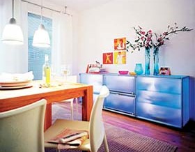 現(xiàn)代家居中,餐廳正日益成為重要的活動(dòng)場(chǎng)所,布置好餐廳,既能創(chuàng)造一個(gè)舒適的就餐環(huán)境,還會(huì)使居室增色不少。夏季,也許你沒(méi)有胃口吃飯,但同樣可以打造一個(gè)讓人陶醉在用餐過(guò)程中的魔力餐廳。