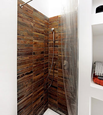 淋浴區(qū)的裝飾材料和房間內(nèi)部形成統(tǒng)一。