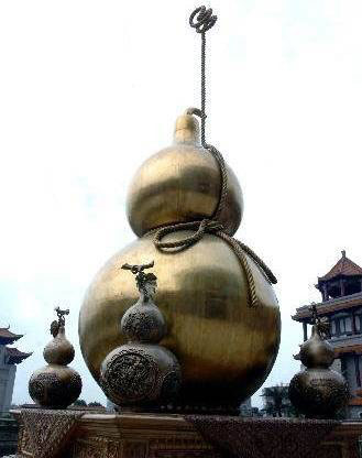 葫蘆也是一種常見的風(fēng)水用品,由于葫蘆的曲線形狀和太極陰陽分界線相近,在內(nèi)里并有隔絕氣場的功能,而且外形嘴小肚大,能將好的氣場收納為己有,也可以將壞的氣場吸收殆盡。使用銅制的葫蘆和天然干曬的葫蘆瓜,分別會有兩種不同的效用,前者用以保健康,后者用作化煞。九宮飛星中的五黃星和二黑星等都和疾病有極大關(guān)系,它們五行都是屬土。因?yàn)殂~器有化解土煞的功效,而葫蘆是盛載靈丹妙藥的法器,能吸取穢煞之氣,所以在床頭、房門上、廚房灶頭附近或在疾病有關(guān)的飛星方位(2008年二黑在西北方,五黃在正南方)掛上銅制的葫蘆,對健康有一定的幫助。