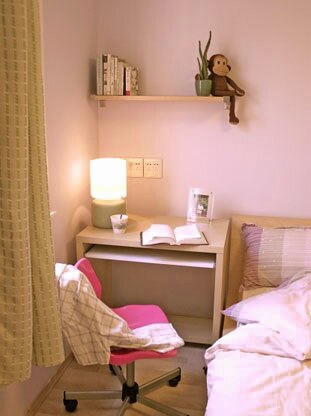 床的另一邊是張小小的電腦桌,工作的地方執(zhí)著于工作。臥室小小的空間被精細(xì)地劃分出不同大小的功能區(qū)。喜歡在下午,當(dāng)太陽斜射進(jìn)屋里的時(shí)候,手里握著茶的溫暖,翻幾頁閑書。特意挑了張粉紅的轉(zhuǎn)椅,瞬間把平淡的臥室點(diǎn)綴的活潑、調(diào)皮起來。