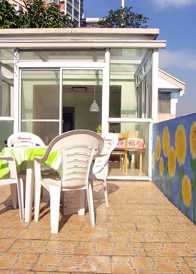最喜歡的,是這一整條的花磚。黑色的底,白色的枝條,彎曲著沿墻而上。象副濃重的水墨畫,頓然的沉靜了下來。其實(shí),古樸、簡單,便是生活留給自己的底兒。