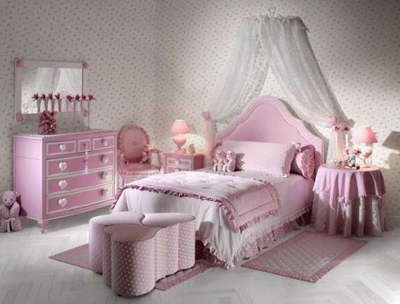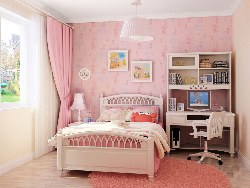 粉色墻體配上白色歐式風(fēng)格的兒童臥室家具,顯得氣質(zhì)又大方。
