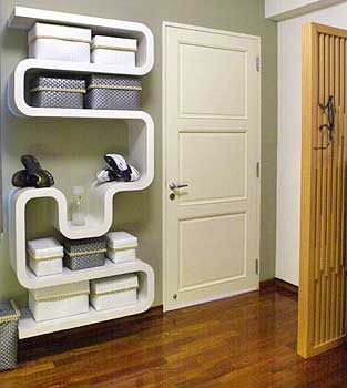 走廊是走動(dòng)頻繁的地帶,為了不影響進(jìn)出兩邊居室,玄關(guān)家具最好不要太大,圓潤(rùn)的曲線造型既會(huì)給空間帶來(lái)流暢感,也不會(huì)因?yàn)榧饨呛陀策吙蚪o主人的出入造成不便。