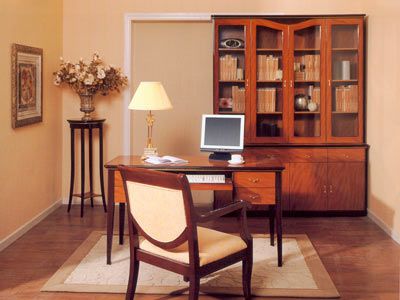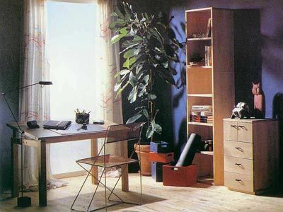 書房的家具除了要有書櫥、書桌、椅子外,兼會(huì)客用的書房還可配備沙發(fā)茶幾等。書櫥應(yīng)靠近書桌以存取方便,書櫥中可留出一些空格來(lái)放置一些工藝品以活躍書房的氣氛,書桌應(yīng)置于窗前或窗戶右側(cè),以保證看書、工作時(shí)有足夠的光線,并可避免在桌面上留下陰影。書桌上的臺(tái)燈應(yīng)靈活、可調(diào),以確保光線的角度、亮度,還可適當(dāng)布置一些盆景、字畫以體現(xiàn)書房的文化氛圍。