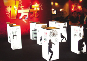 黑白色搭配的經(jīng)典之作非博洛尼家居莫屬。半包廂式設(shè)計(jì)的博洛尼家裝體驗(yàn)館給人的感覺是神秘、高雅、氣度不凡,整個(gè)“包廂”的主體色調(diào)是黑色,“包廂”內(nèi)是透明的桌椅,墻上是白色的文字展示,黑色而極富光亮質(zhì)感的垂簾將包廂內(nèi)的人與外界隔離,置身于內(nèi)的人體驗(yàn)的是博洛尼咨詢?nèi)藛T的輕聲細(xì)語。“包廂”外特意凹進(jìn)設(shè)置,留出10多平方米空間,擺放著似乎與展廳無關(guān)的白色柱體,柱體微微泛著粉色的光,但不急于奔走的人會發(fā)現(xiàn)就是這一小排柱體讓黑色的博洛尼家居體驗(yàn)館(