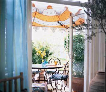 餐廳家具可以選擇這種在室內(nèi)或是室外看上去都很容易搭配的,以便將庭院與起居室連接起來(lái)。室外的配飾物品可以選擇同樣的色彩,例如咖啡椅上綠松石色的靠墊,地上則鋪著舒適的自然風(fēng)格的草編地毯。色彩鮮艷的繡花大坐墊可以隨意搬動(dòng),坐上去更是如此的舒適、愜意。郁郁蔥蔥的灌木遮擋著四周,頭頂有巨大的帳篷遮擋著日光的照射,一個(gè)隱秘的戶外小“窩”就這樣呈現(xiàn)在你面前。