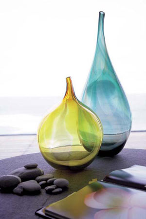 1. 造型時尚的玻璃器皿和海邊隨處可見的石子被擺放在房間一角,處處體現(xiàn)了設(shè)計(jì)者的匠心獨(dú)具。