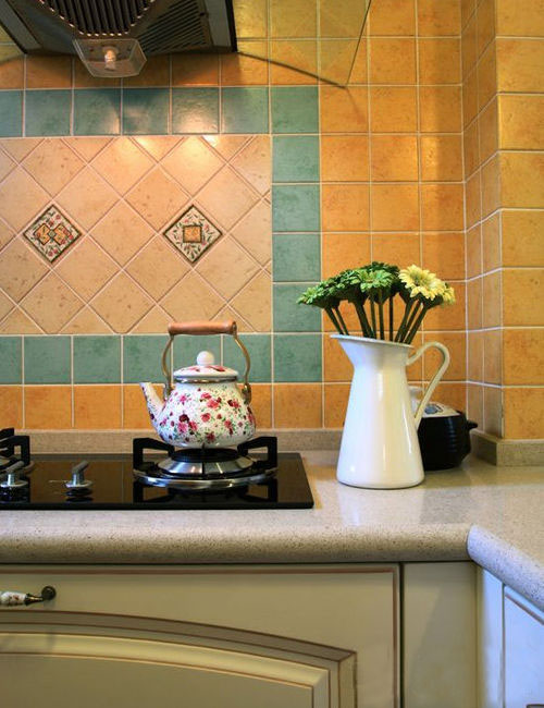 此套案例又可稱作美式鄉(xiāng)村風格,我們通常稱之為田園風格;廚房的面積較大,操作方便、功能強大。富有鄉(xiāng)村特色的墻面磚,韓式田園風味的水壺,白晰的花瓶,條紋清晰的櫥下柜,干凈簡單的田園風,這類風格越來越多人的喜歡,但是這類風格對室內(nèi)面積有一定要求,一般小戶型很難做到要求。