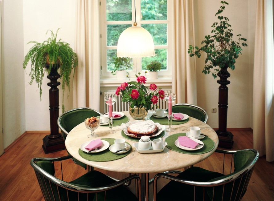 餐廳的布置及設計都選用相當簡潔的手法,使空間感更強。三口之家選用圓型餐桌,可以有效地建立起一種溫情暖意的家庭氛圍。