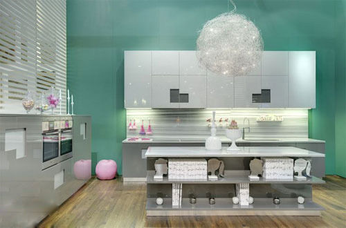 如果房屋比較高,也可以在開放式廚房的正中使用吊燈,四周環(huán)繞射燈,但是燈的造型不能太復(fù)雜,以免日后的清潔工作帶來(lái)麻煩。當(dāng)然,從節(jié)能上考慮,還是不要安置太多的燈,最好選擇本身自帶燈的櫥柜。