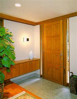 在美加地區(qū),許多住宅的客廳、餐廳以及起居室均不對正大門,對門而立的不是樓梯便是墻壁,因此可免除風(fēng)沙入屋的煩惱。而東方式的住宅設(shè)計(jì),則是入門見廳,不設(shè)一玄關(guān),則大門若被風(fēng)沙吹襲,坐在客 廳便會深受其擾。如果大門正好向著西北或是正北,冬天常受凜冽的寒風(fēng)侵襲,那便更需要玄關(guān)來作遮擋了。