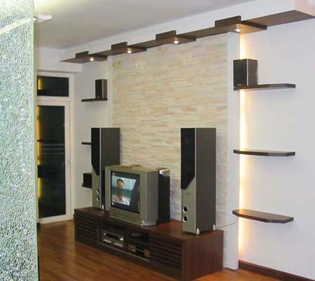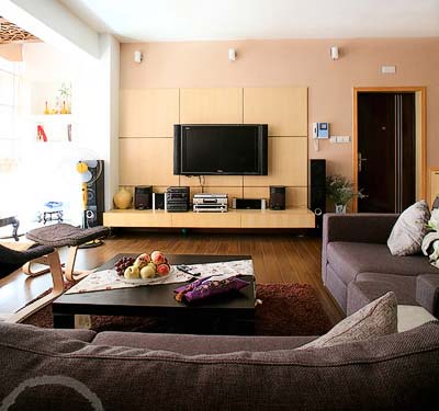 用飾面板做電視背景墻,可選擇的花色很多,完全不用擔(dān)心與居室無法搭配的問題,一般只需六七十元一張。