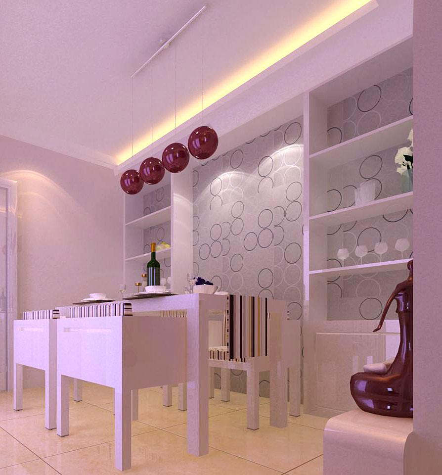 如果餐廳的面積很大,但又想花錢而裝修出溫馨的用餐環(huán)境,可以考慮在廚房中使用帶有花朵圖案的璧磚,這樣很容易形成整體的溫馨自然氛圍。此外,可利用隔斷單設(shè)一間用餐區(qū)。例如,可采用象牙白色的個隔斷,從主體顏色偏亮的餐廳中隔出用餐區(qū),用餐區(qū)的設(shè)計應(yīng)與房間的整體風(fēng)格和諧統(tǒng)一。如果是夏天,可以在餐廳里配上棉、木、瓷等材質(zhì)的居家用品,燈光選用冷色調(diào),以便讓人從心底感受到寧靜和涼意。如果是冬天,應(yīng)采用暖色調(diào)的燈光,達(dá)到溫馨的效果。