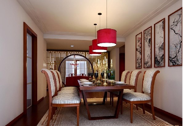 對于一些餐廳較大的房間,放置屏風(fēng)是實用性與藝術(shù)性兼具的做法。只需購買配合室內(nèi)格調(diào)的屏風(fēng)即可,通常東方色彩較濃,也可在地面建造略高的平臺作為分界。若經(jīng)濟條件和空間允許的話,不妨加建一道拱門,將餐廳區(qū)隔開。注意拱門的形式、風(fēng)格、色彩等必須與餐廳區(qū)配合,這樣能突出拱門的作用。將地板的形狀、色彩、圖案、材質(zhì)分成兩個不同部分,以此劃分界限,形成兩個格調(diào)迥異的區(qū)域。