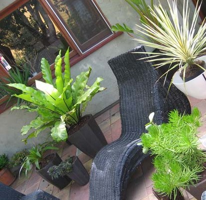 和遮陽同等重要的是通風(fēng)。有一年何伯發(fā)現(xiàn)自己種的一盆非洲茉莉花期縮短了,原來是那盆花被擺在了陽臺(tái)的角落,吹不到風(fēng)。何伯馬上調(diào)整布局,但調(diào)來調(diào)去都不理想,原因在于陽臺(tái)是半通透的,靠里面的位置很難有風(fēng)。何伯干脆買了臺(tái)小風(fēng)扇,開到最小的檔位,每天中午開一個(gè)小時(shí)。