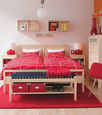 清新雅致型:適合自然恬淡的新人。白色或淺淡的粉色成為主色調,對于新房來說卻未免有點冷清。這時可以通過家具的搭配來增添喜慶的氣氛,宜家的紅色沙發(fā)床能給干凈素雅的臥室?guī)硪恍崃业幕貞?。具有自然風格的床品可以很好襯托出臥室的悠靜境界,嬌嫩的粉紅、富貴的金黃更能提升整體的格調。