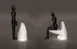 就算是兩衛(wèi)的房型,一家人也不會搞得像使用公共廁所那樣區(qū)分男女吧,可就是有一些“霸道”的女主人在主衛(wèi)門上貼上“WO”的專用標志,然后在另一衛(wèi)生間的門上標志“MAN”,當然兩個衛(wèi)生間門上的標志合在一起的“WOMAN”便使得大女子主義昭然若揭。如果使用一個衛(wèi)生間,怎樣才能做到男女平等共享方便呢?一心維護男權(quán)的設計師便有了這個設計——馬桶便池二合一,便池、馬桶一邊一半,絕對公平。放下一側(cè)的馬桶,“WO”就可坐下方便,并且在馬桶狀態(tài)時,墊圈部分早已通過蒸汽和紫外光的消毒;將馬桶部分立起,“MAN”就可以自動旋轉(zhuǎn)切換至便池功能使用了。